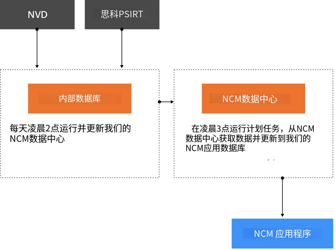 固件是网络设备的关键组成部分,当无人留意时,它可能会暴露出可能容易入侵的漏洞。如果发生漏洞,可能会造成严重的后果,影响整个网络。NCM结合了先进的固件漏洞管理,此工具从NVD和Cisco PSIRT等第三方来源检索每日数据,确保应用程序保持最新状态。现在,让我们深入了解此流程的工作流程: