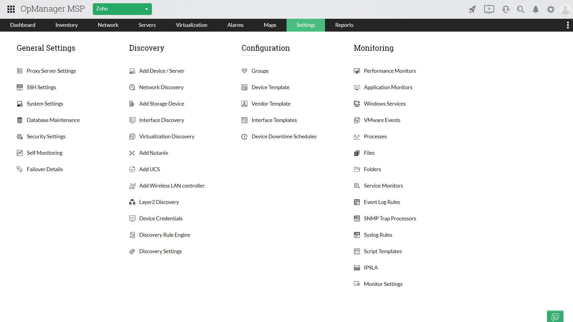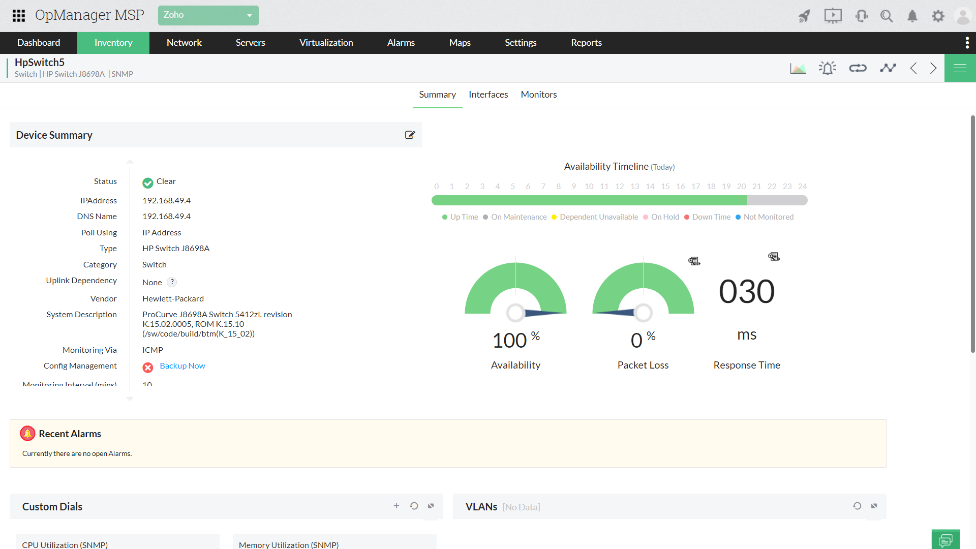 OpManager MSP的多租户架构使您可以监控多个客户端的网络,以了解性能,可用性和运行状况。使用SNMP / WMI,您可以监控多供应商网络设备(如路由器,交换机和服务器)的关键性能指标。