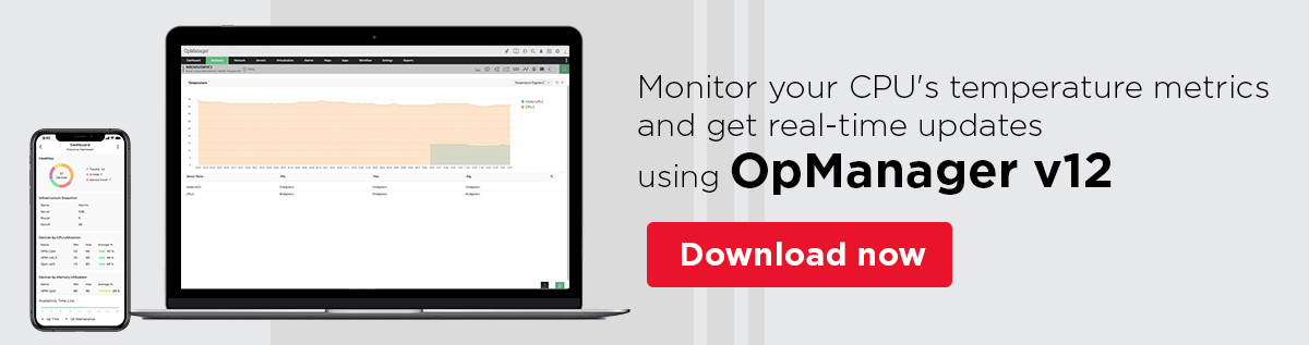 吗?现在就注册免费演示,让我们向您展示如何使用CPU温度监控软件OpManager优化温度监控功能。