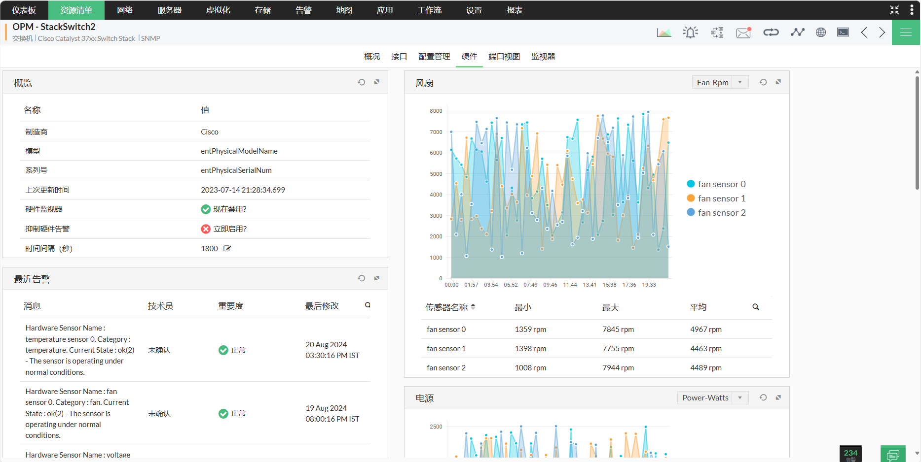 ManageEngine OpManager是一个强大的CPU监控软件,可以持续监控所有网络设备的CPU温度。使用OpManager,您可以监控: