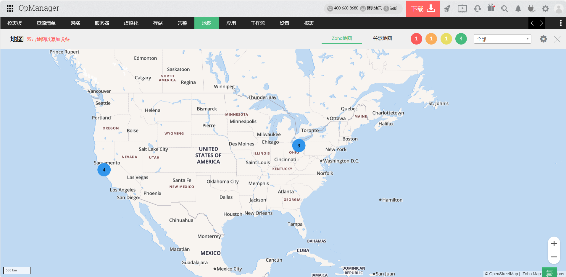 OpManager的自定义拓扑绘制工具可以帮助您将这些关键设备以及连接关系整合到一个视图中。
