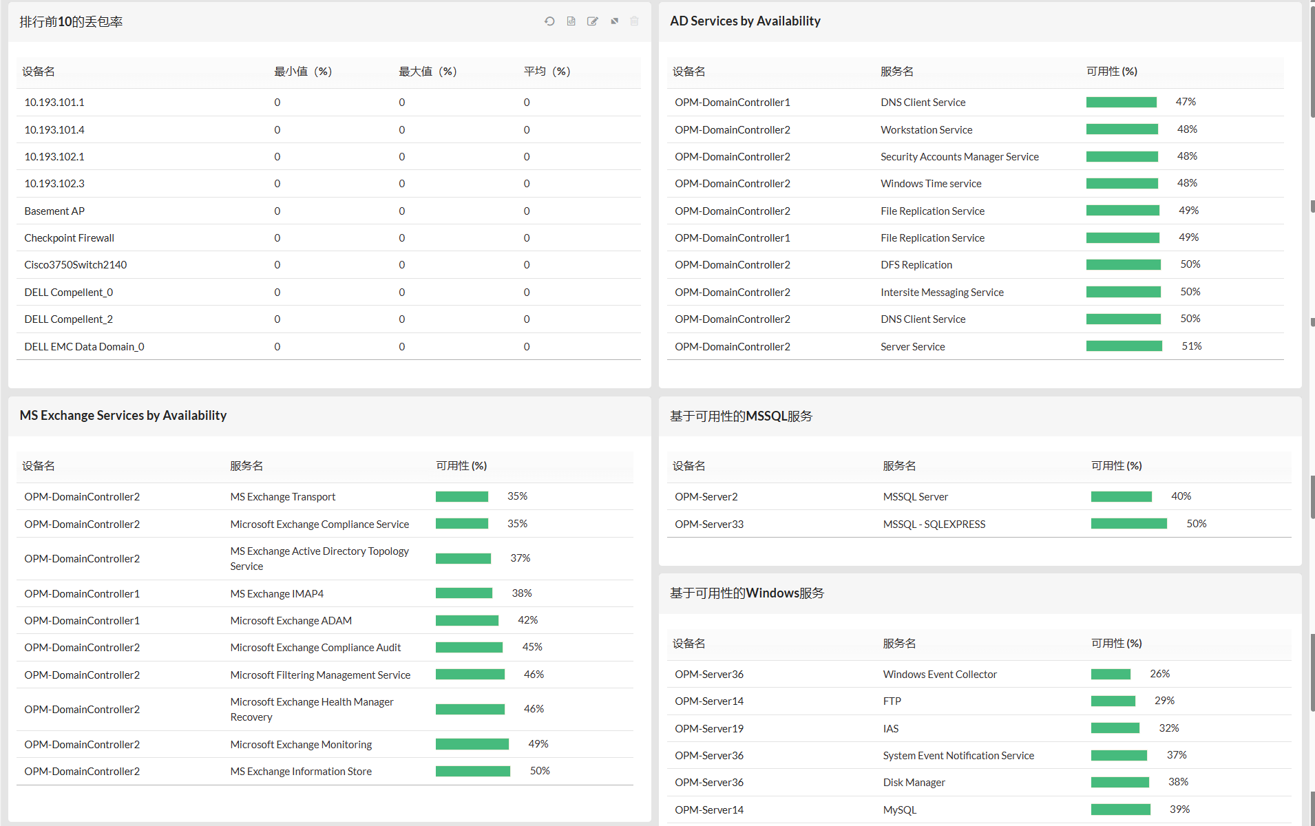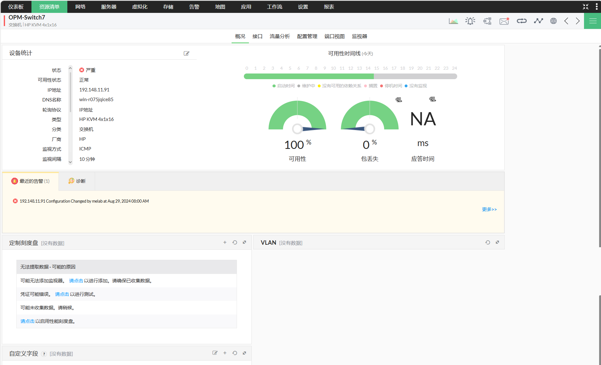 在发现数据中心的网络资源后,OpManager会根据您的设备类型自动关联性能监控器并开始监控它们。您可以监控数据中心中的物理服务器和虚拟服务器,使用SNMP/WMI/CLI协议从设备获取性能数据。
