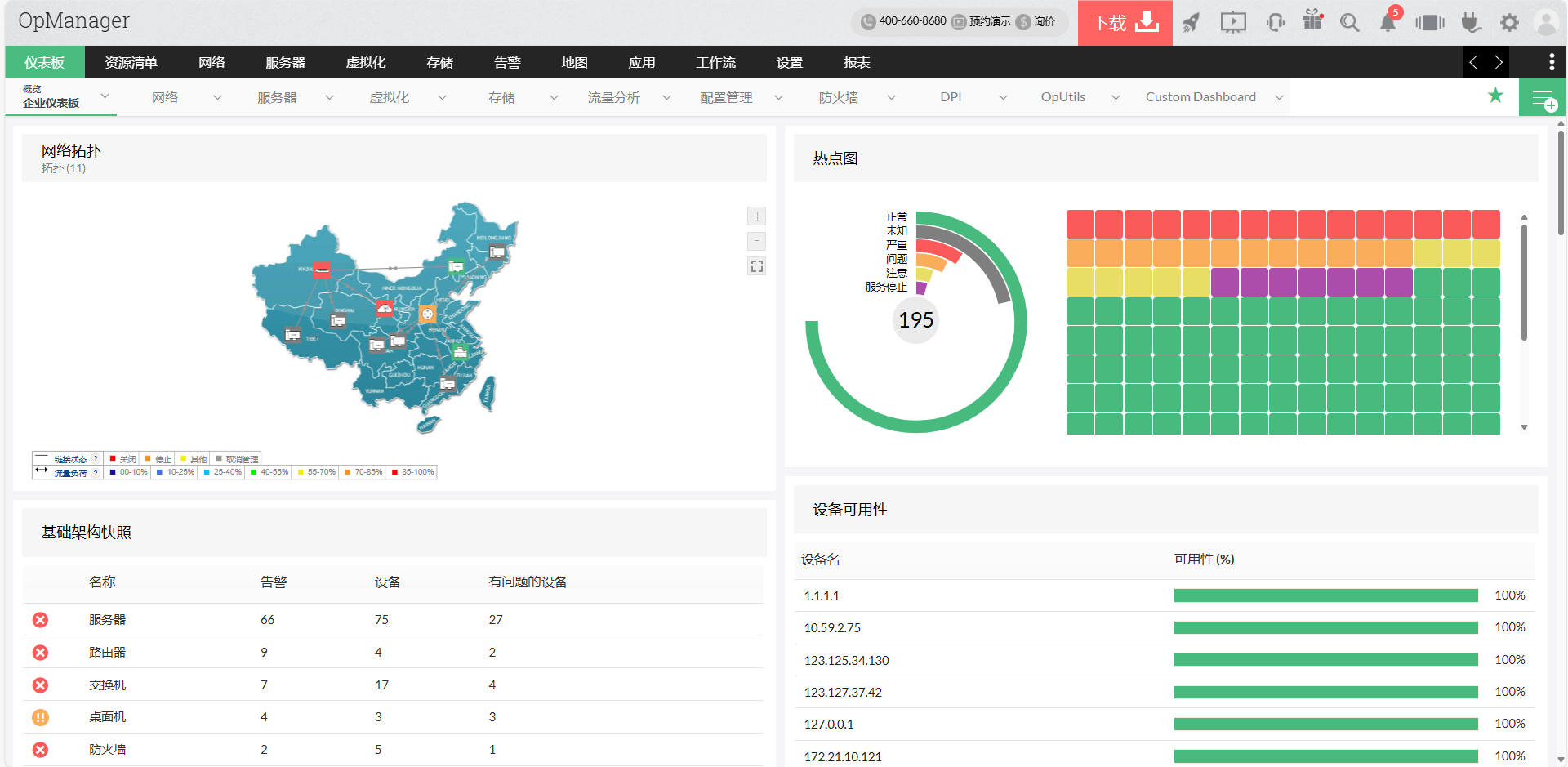 ManageEngine OpManager帮助您管理和监控数据中心性能的所有不同方面,所有这些都来自一个统一的控制台。通过实时监控数据中心的关键性能指标,OpManager可以作为一个完整的数据中心监控系统,使您能够将数据中心资源维持在其最高性能水平。
