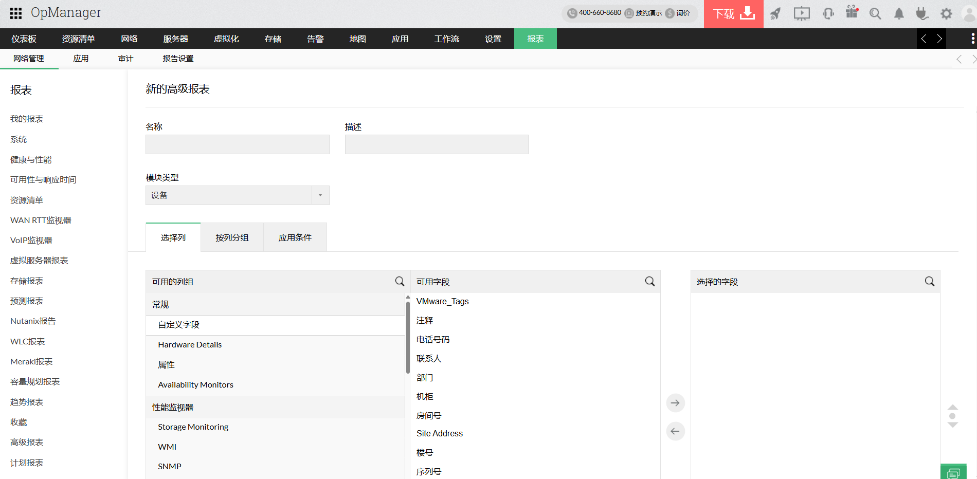 OpManager的数据中心监控报告帮助您了解数据中心性能的总体情况。您可以从以下四个方面查看数据中心设备性能的历史数据:性能、可用性、响应时间和性能。包丢失和库存。可以选择基于组或业务视图的设备,甚至可以安排以特定间隔将报告发送给您选择的收件人。