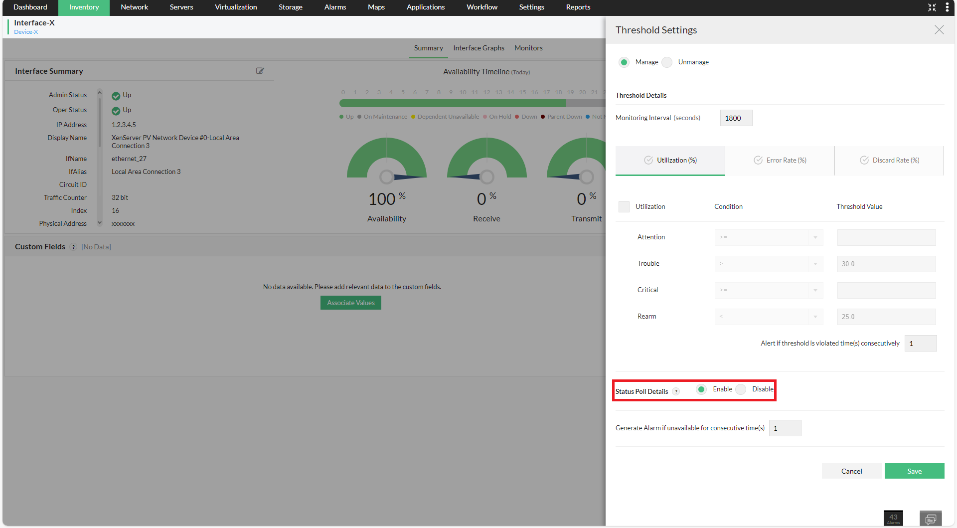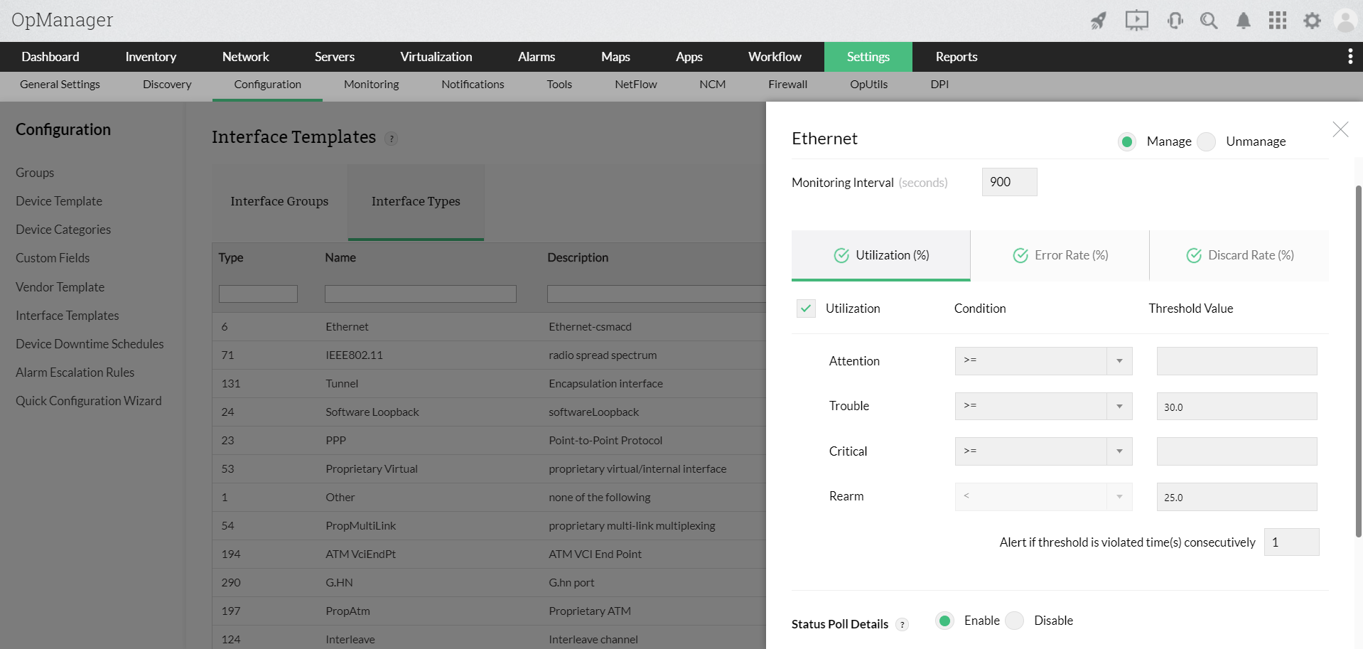 您还可以按照以下步骤从接口模板页面禁用特定接口的状态轮询选项。
