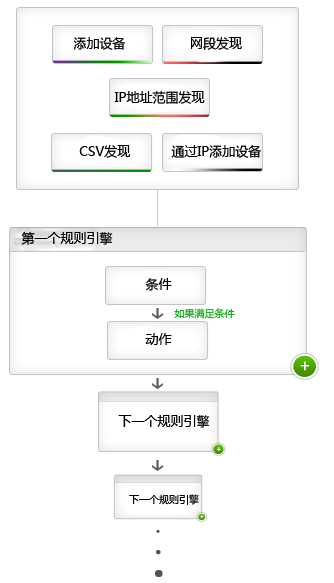 规则引擎帮助你在发现设备或添加设备的时候执行一系列预先定义的动作,例如:添加到业务视图,关联服务监视器等。