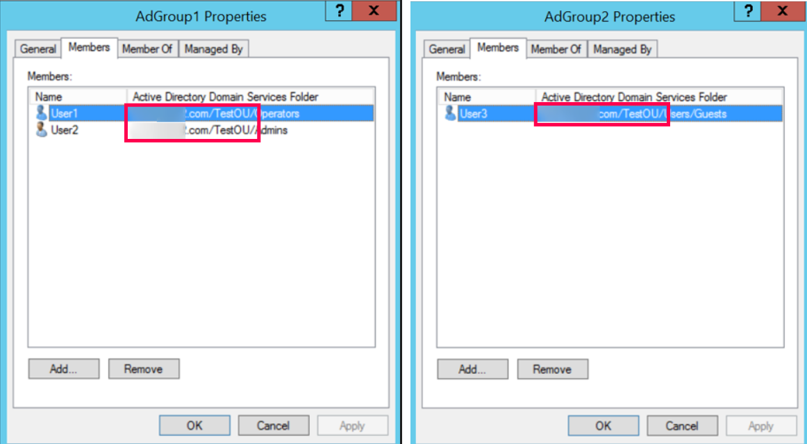 1. 单击域名称旁边的箭头标记以显示其下的所有 AD 组。