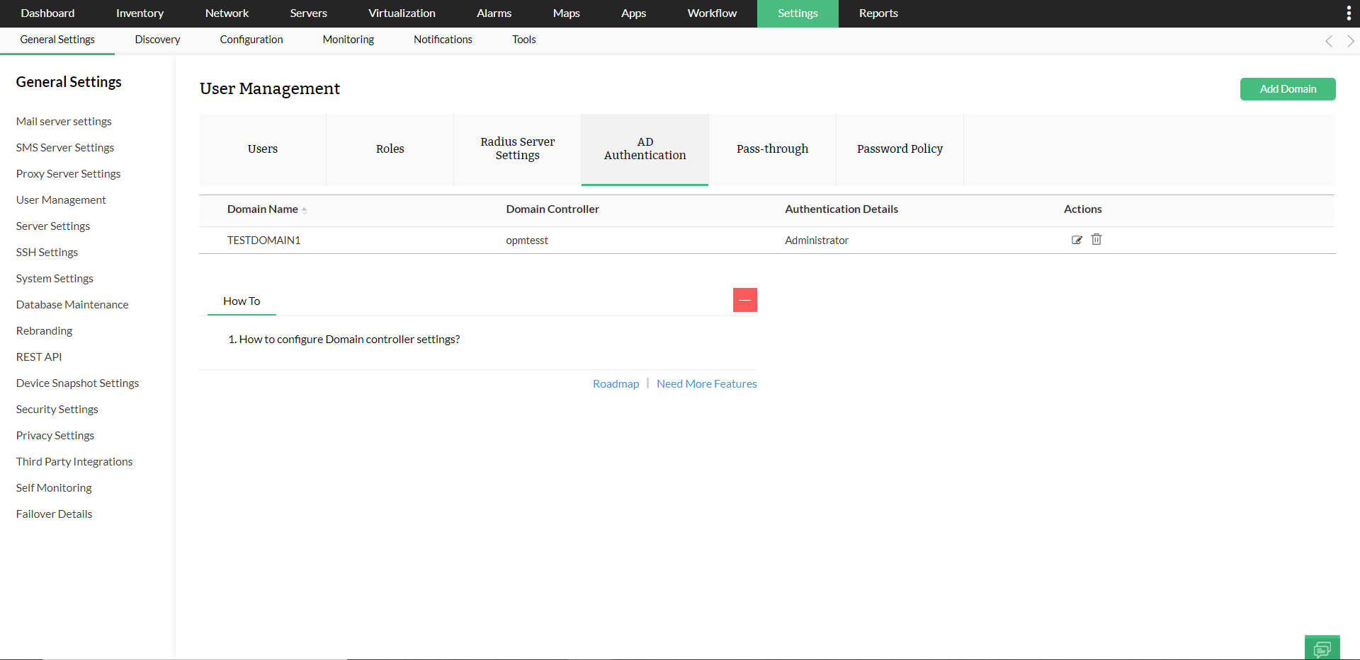 您可以使用AD身份验证和用户管理功能在OpManager中创建域,并在OpManager中手动创建用户。