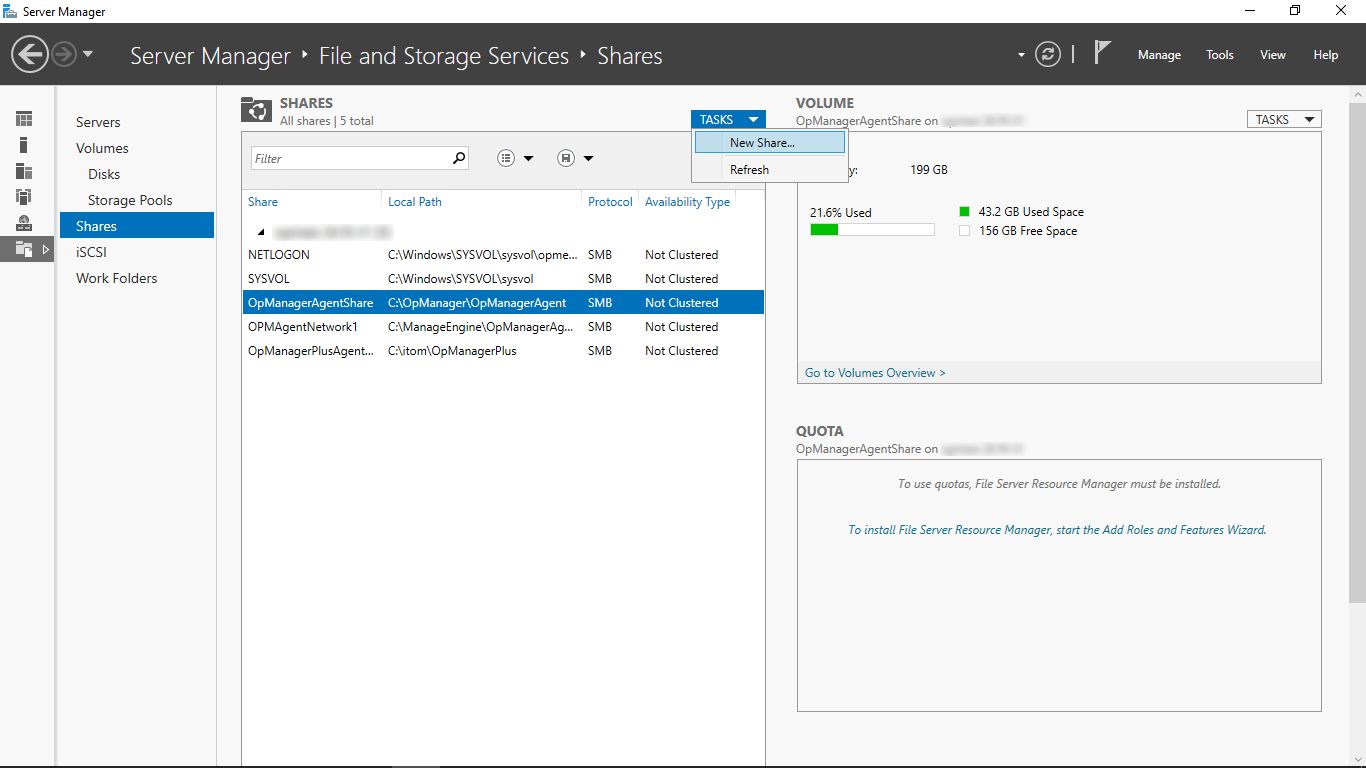 - 打开共享选项卡,单击任务,然后选择新建共享。