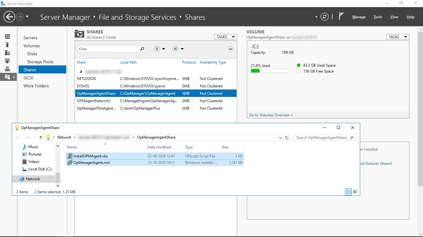 - 将OpManagerAgent.msi、OPMAgentServerInfo.json和 InstallOPMAgent.vbs 文件放在共享中。