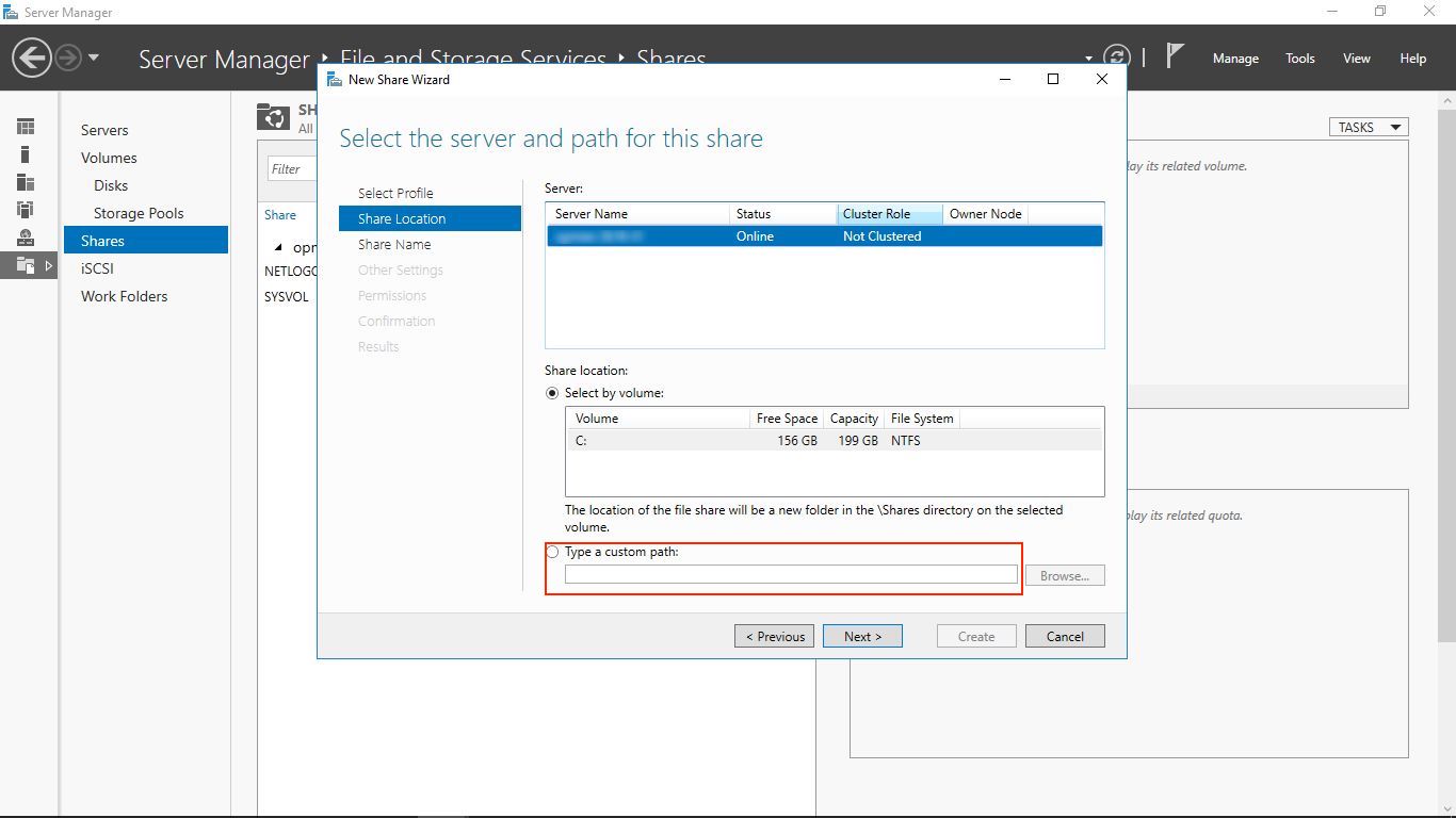 - 在指定共享名称选项卡上,输入共享的名称。如果需要,请输入共享说明。该向导现在将自动在共享中创建本地和远程文件路径。