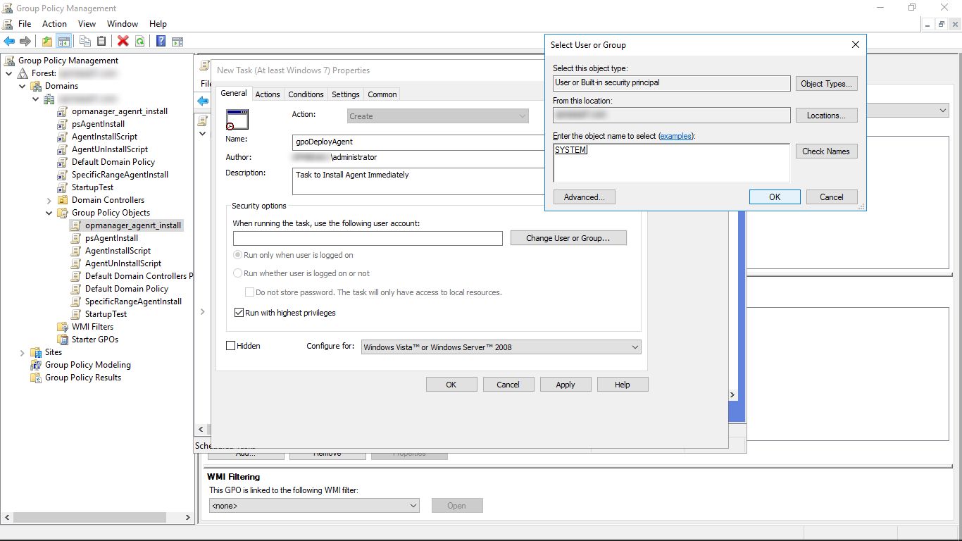 注意:可以通过更改新 GPO 的“安全筛选”值来修改部署和安装代理的计算机的范围。