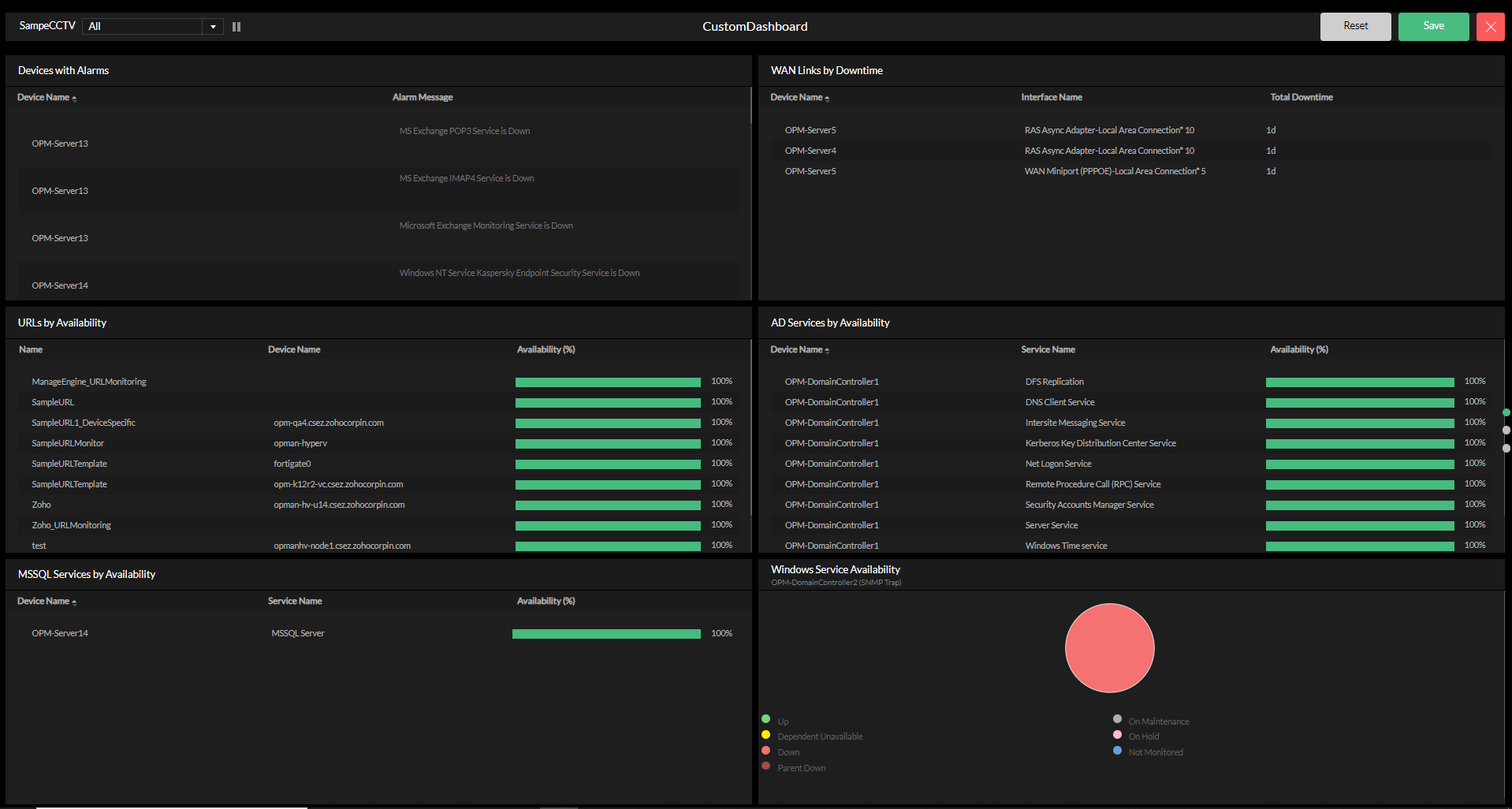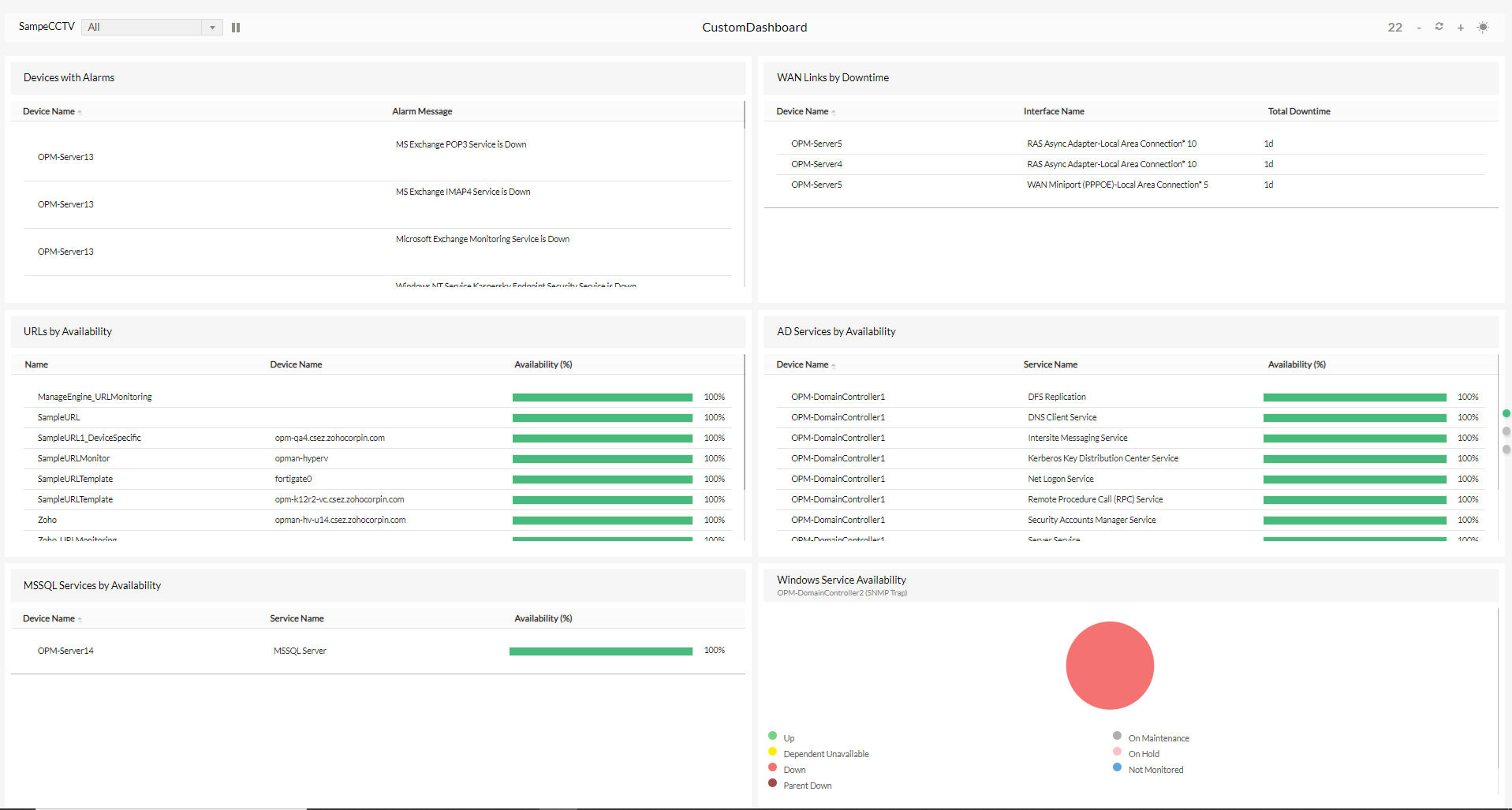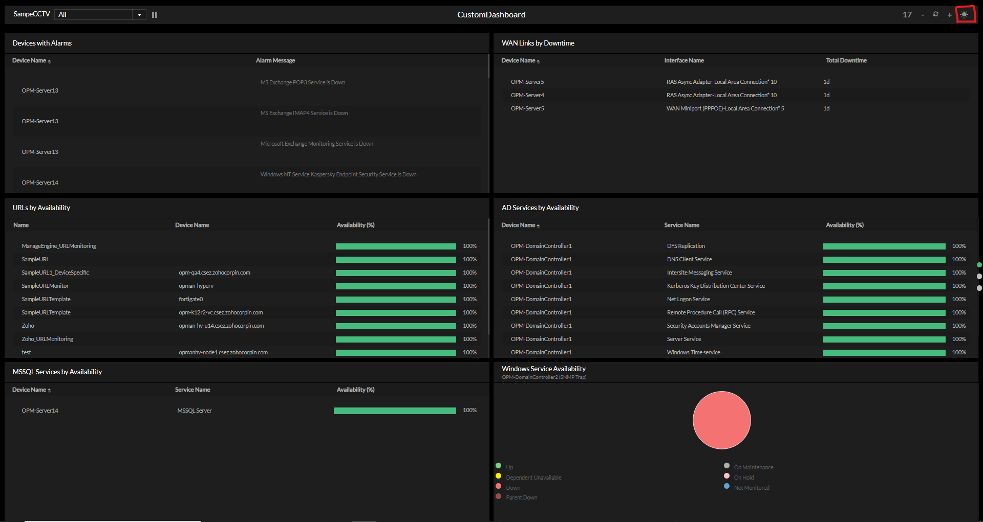OpManager的NOC视图功能为持续监控网络运营中心的关键网络性能指标和仪表板提供了强大的解决方案。该工具可以在类似NOC的设置中显示选定的仪表板,从而可以实时监控网络健康状况和性能。借助 NOC视图,用户可以按指定的时间间隔配置和循环浏览基本仪表板,确保关键信息随时可用并不断更新。本帮助文档将指导您完成添加、编辑和查看 NOC 视图的过程。