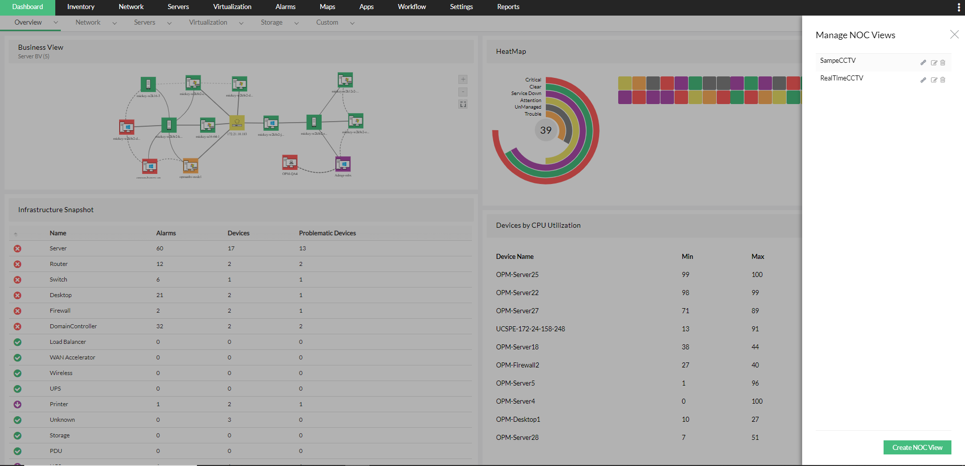- 转到 仪表板 > NOC 视图 > 单击要查看的 NOC 视图的名称。该特定 NOC 视图将在新窗口中打开。