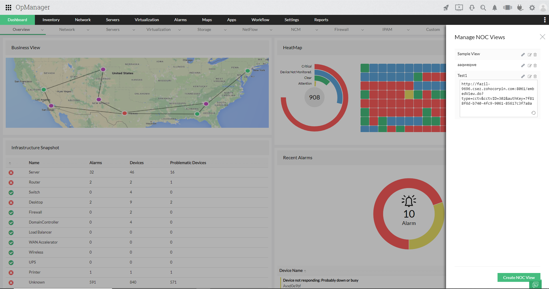 - 您可以使用嵌入的URL访问特定的NOC视图,而无需登录OpManager。