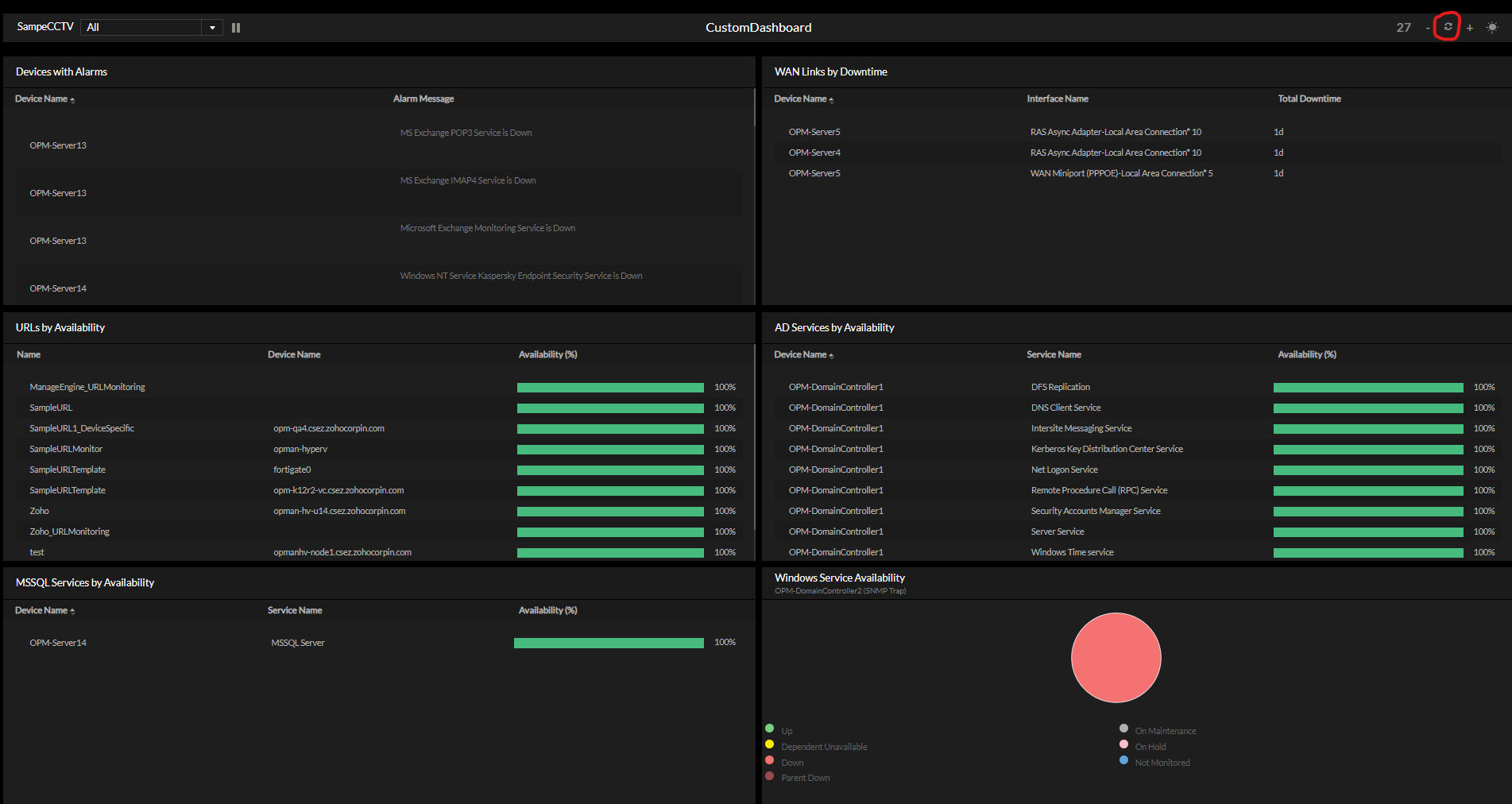 您可以通过单击右上角的刷新间隔图标在 NOC 窗口中重置刷新间隔。这还会将您带回 NOC 窗口的第一页。