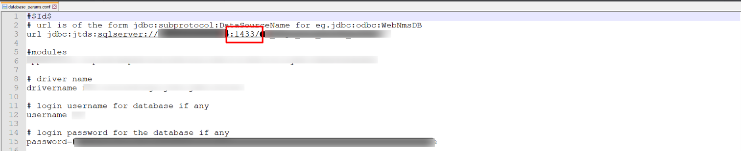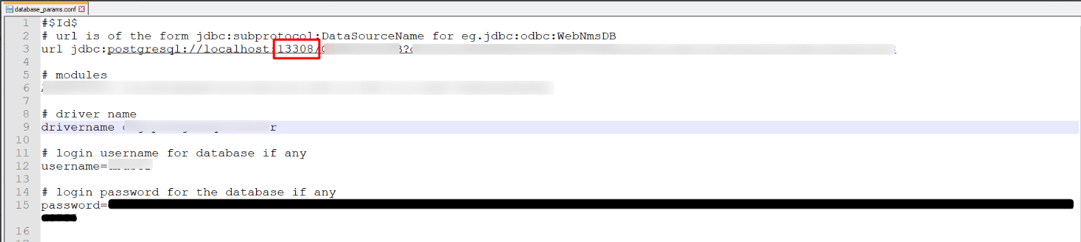 或者,关闭OpManager服务,转到<OPM_Installation_Directory>\conf\database_params.conf并打开database_params.conf文件。在 conf 文件中,更改 URL 中的端口号。
