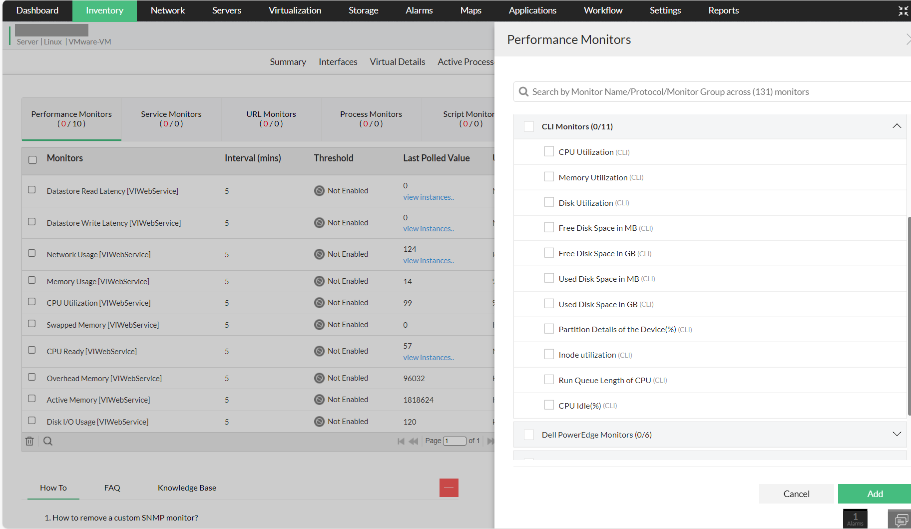默认情况下,OpManager使用SNMP监控系统资源。但如果需要,您还可以添加基于 CLI 的监视器,这两种类型的监视器将协同工作。所有 Unix 服务器模板都预配置了资源监视器。您需要做的就是选择 CLI 监视器并将它们关联到所需的设备。
