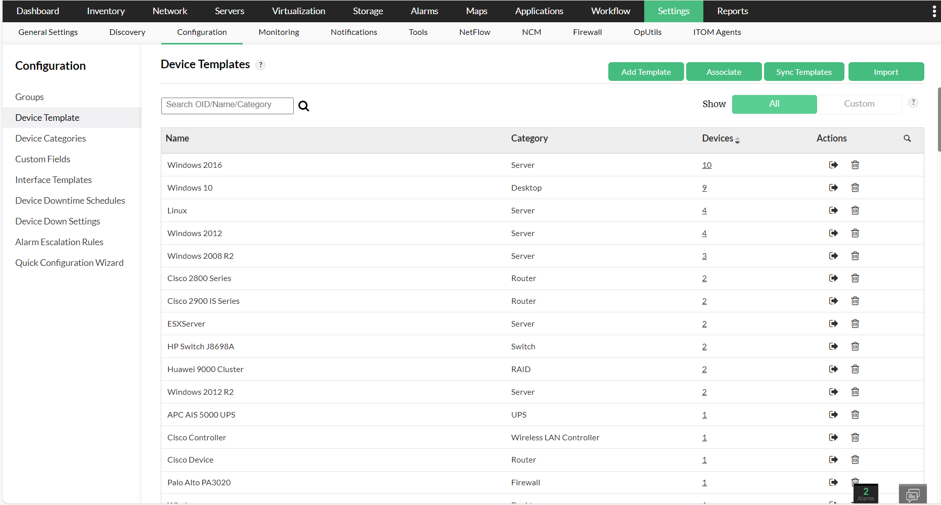 - 导航到设置->配置->设备模板。