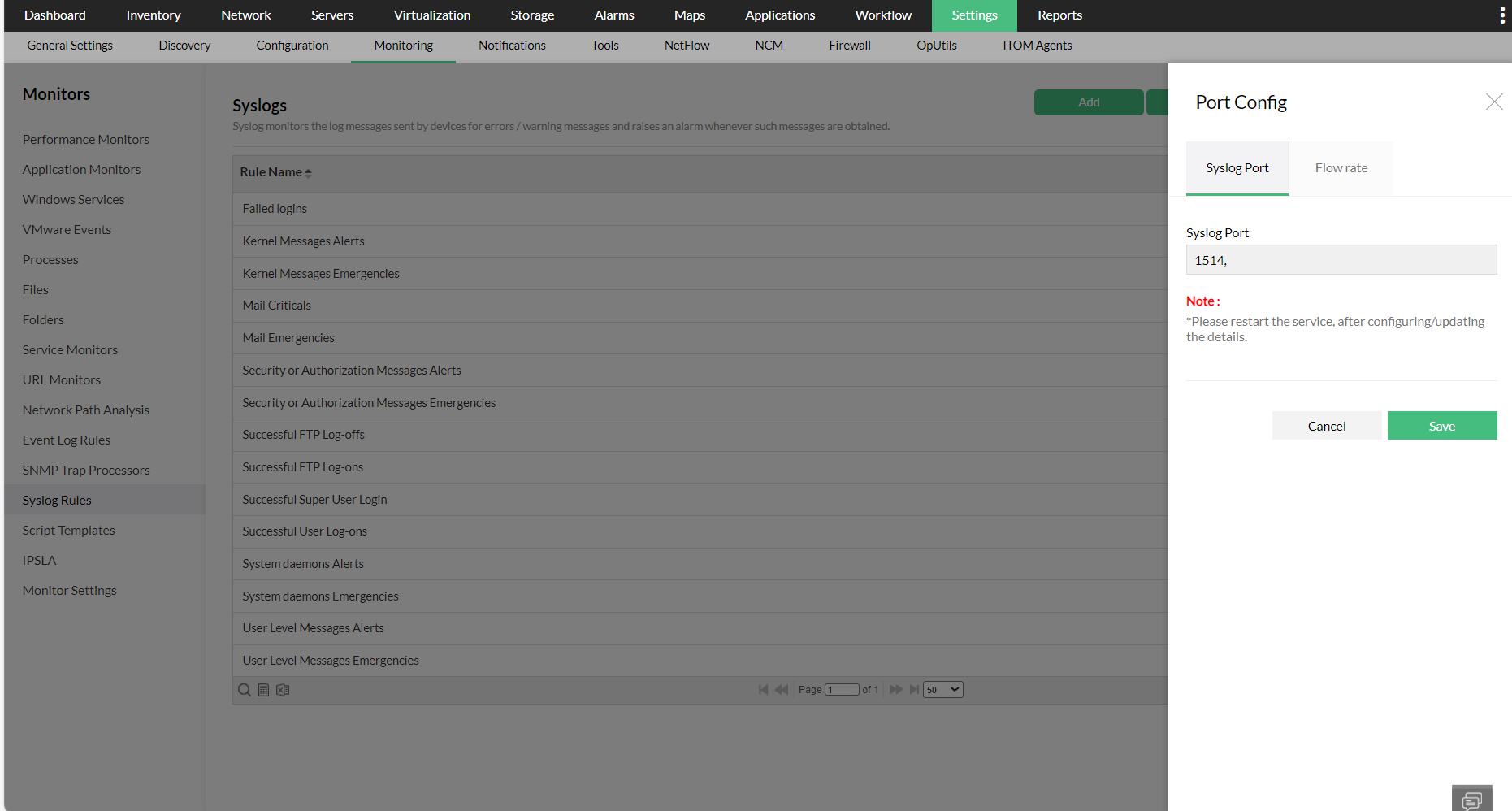 要了解如何在OpManager中添加系统日志规则,请单击此处。
