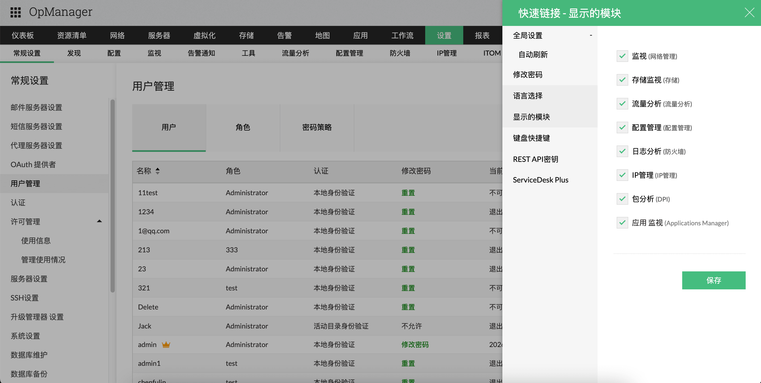 您可以在 OpManager 中创建用户并为其授予所需的权限。只有使用 admin 超级管理员账号或具有“完全控制”权限的账号,才可以创建用户。(此处的“完全控制”权限账号是指:能够访问所有设备并启用所有附加模块的管理员用户。)