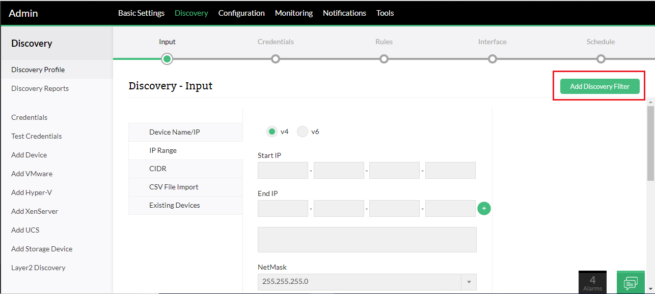 发现筛选器用于根据某些筛选条件包含/排除设备。当特定输入范围内有各种各样的设备并且您希望添加特定类型的设备(例如 Windows 设备)时,这些过滤器会派上用场。