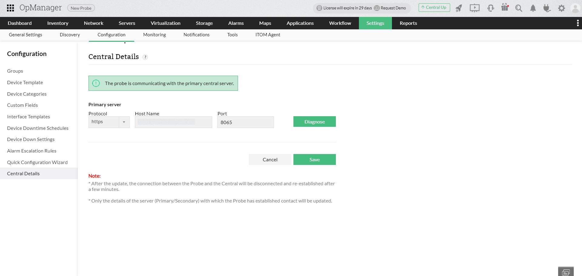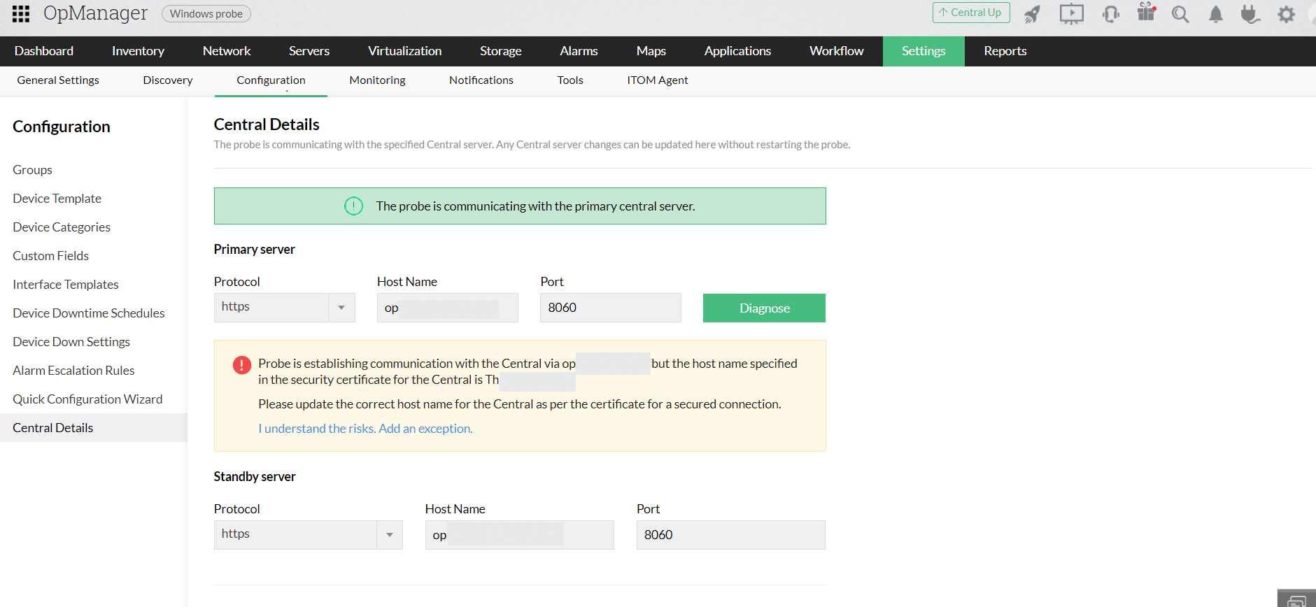 注意:当主机名和SSL证书不匹配时,OpManager将通知用户。单击此处详细了解主机名不匹配的影响。