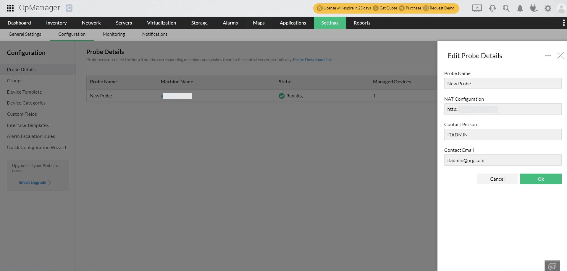 单击探针名称以编辑详细信息。您可以重命名探针、更改 NAT 配置和联系人详细信息。
