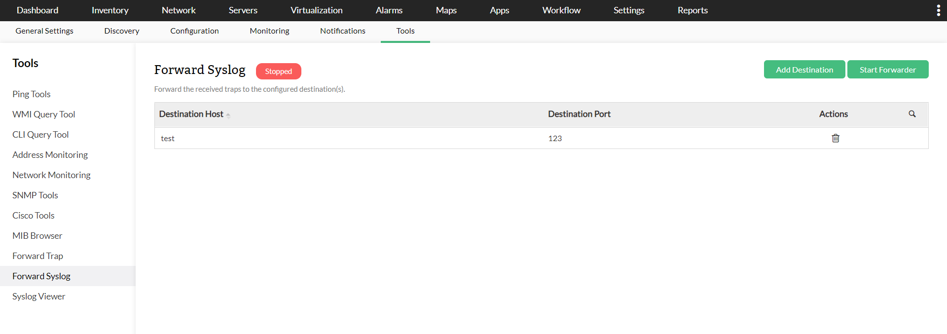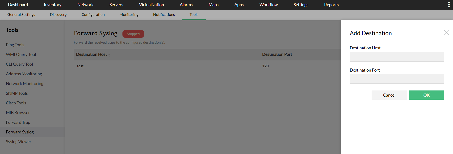 提供 SysLog 必须转发到的 NMS 主机的名称/IP 地址。