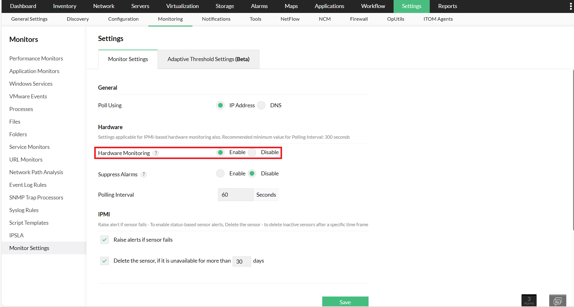 在开始监控网络设备的硬件之前,请确保它满足OpManager的硬件监控先决条件。OpManager的硬件健康状况监控允许您