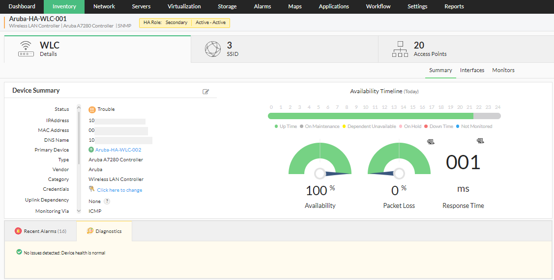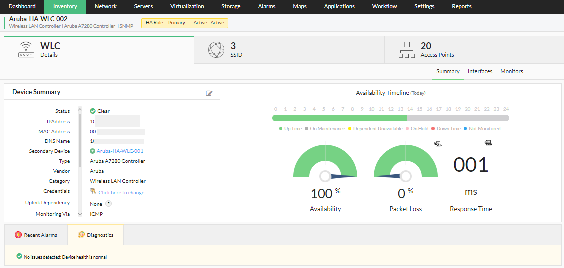 在更新到版本12.6.255之后,OpManager通过部署无线局域网控制器的高可用性监控,实现了网络内无线AP的不间断可用性。与传统的高可用性集群配置一样,您可以使用两种不同的配置模式来设置 WLC。他们是:-