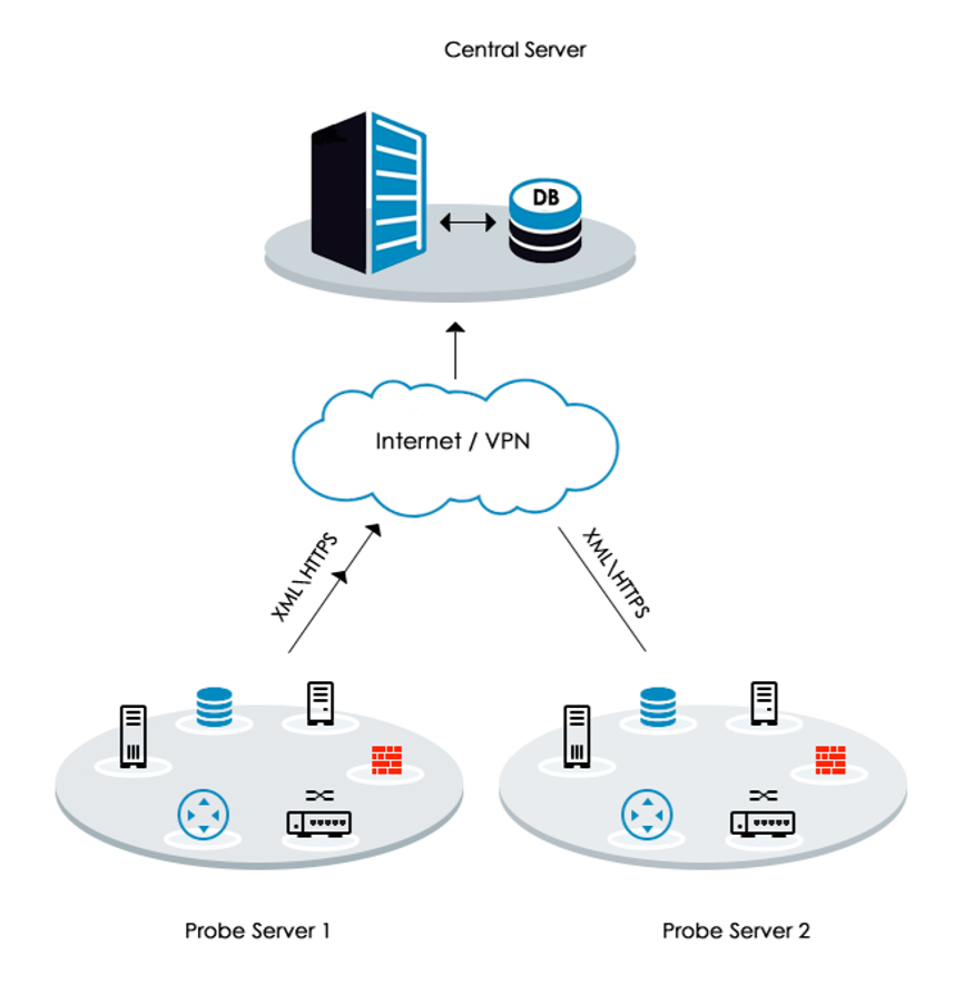 探针服务器:探针定期轮询本地网络中的设备,并将数据更新到中心服务器。它必须安装在远程位置。