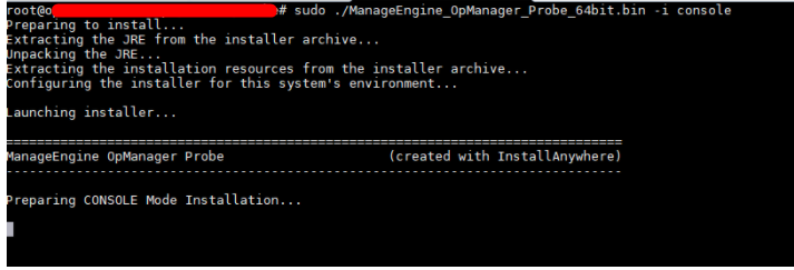 第 1 步:使用安全权限 (sudo) 和 -i 控console项执行ManageEngine_OpManager_Probe_64bit.bin。