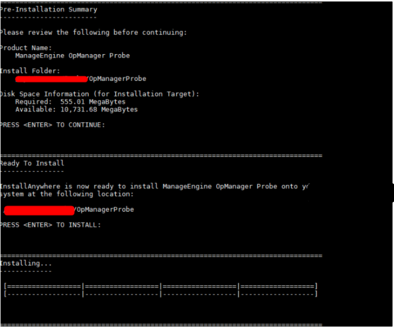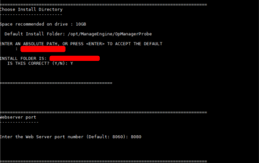 注意: 建议将OpManagerProbe安装在opt文件夹中。默认情况下,OpManagerProbe安装在/opt/ManageEngine/OpManagerProbe目录中。
