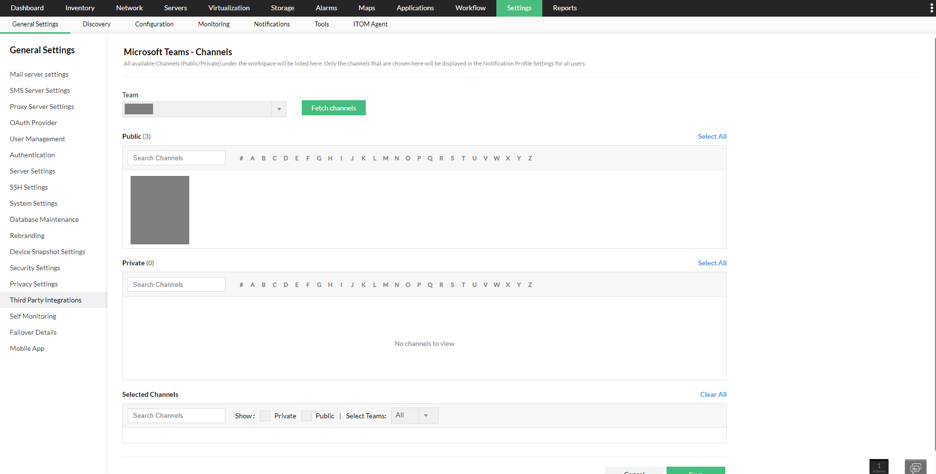 - 选择所需的团队和频道。如果下拉列表中没有特定渠道,请在第三方集成页面下配置它们。