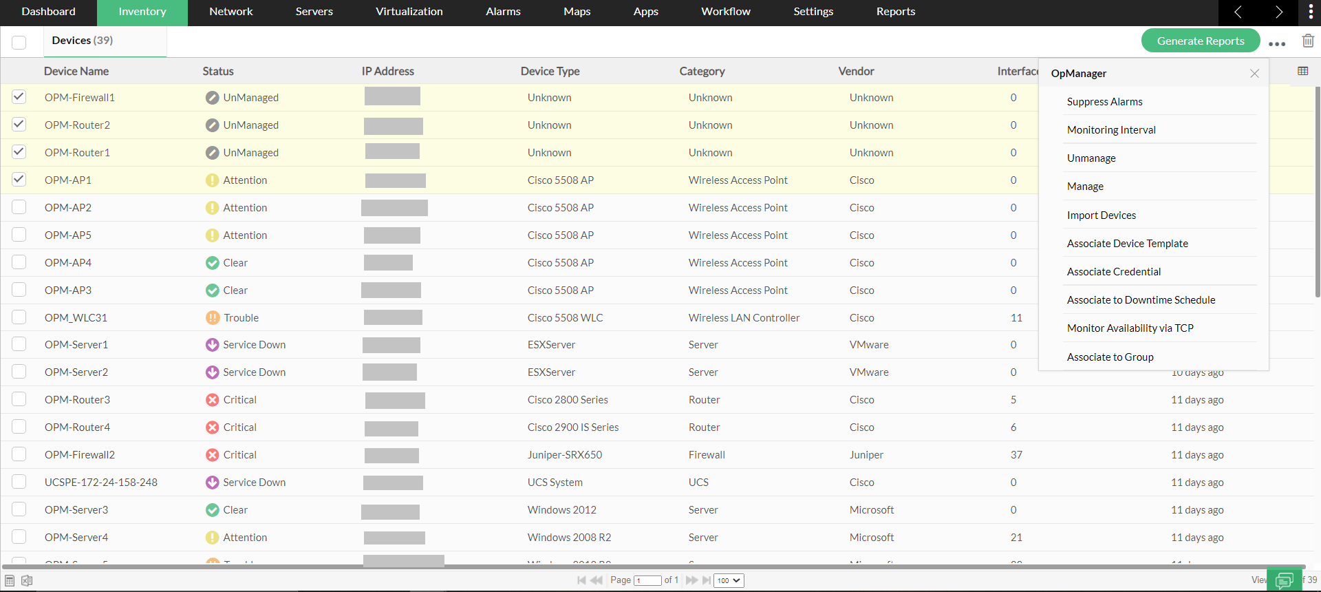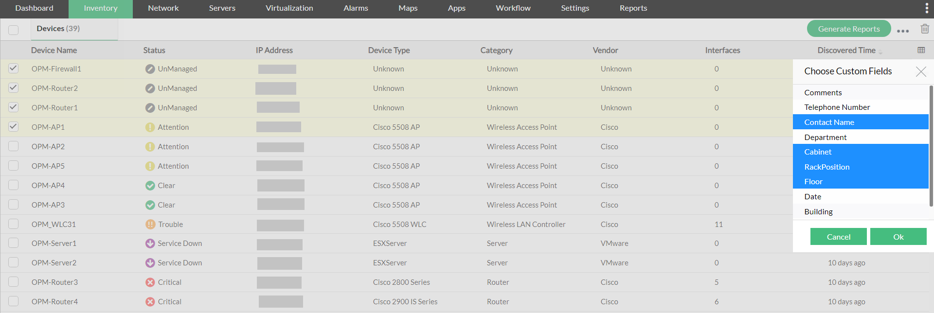 生成报表:您可以批量为发现的设备和接口生成自定义可用性报表。了解更多。