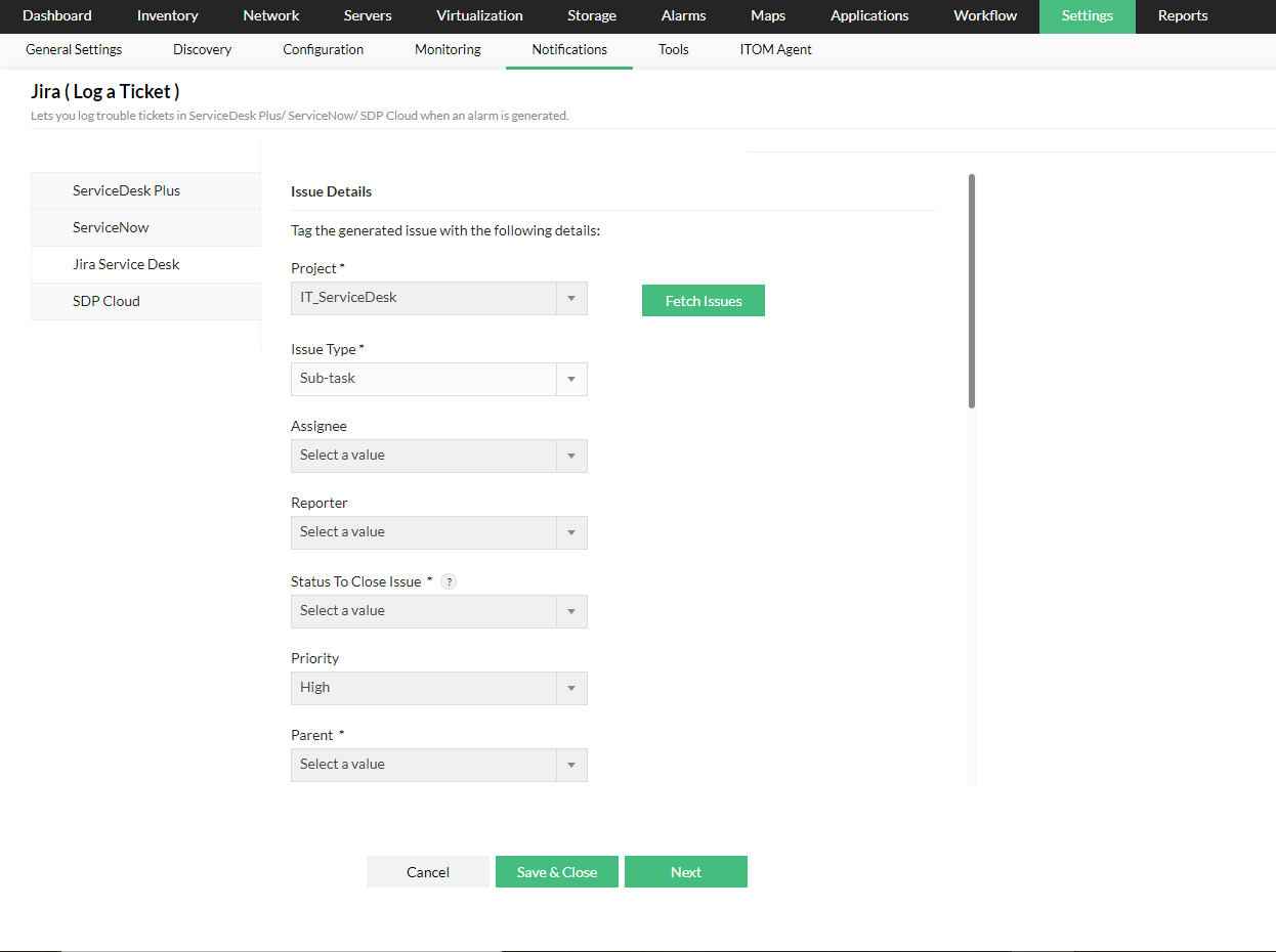 点击这里了解如何使用Jira Service Management配置OpManager。
