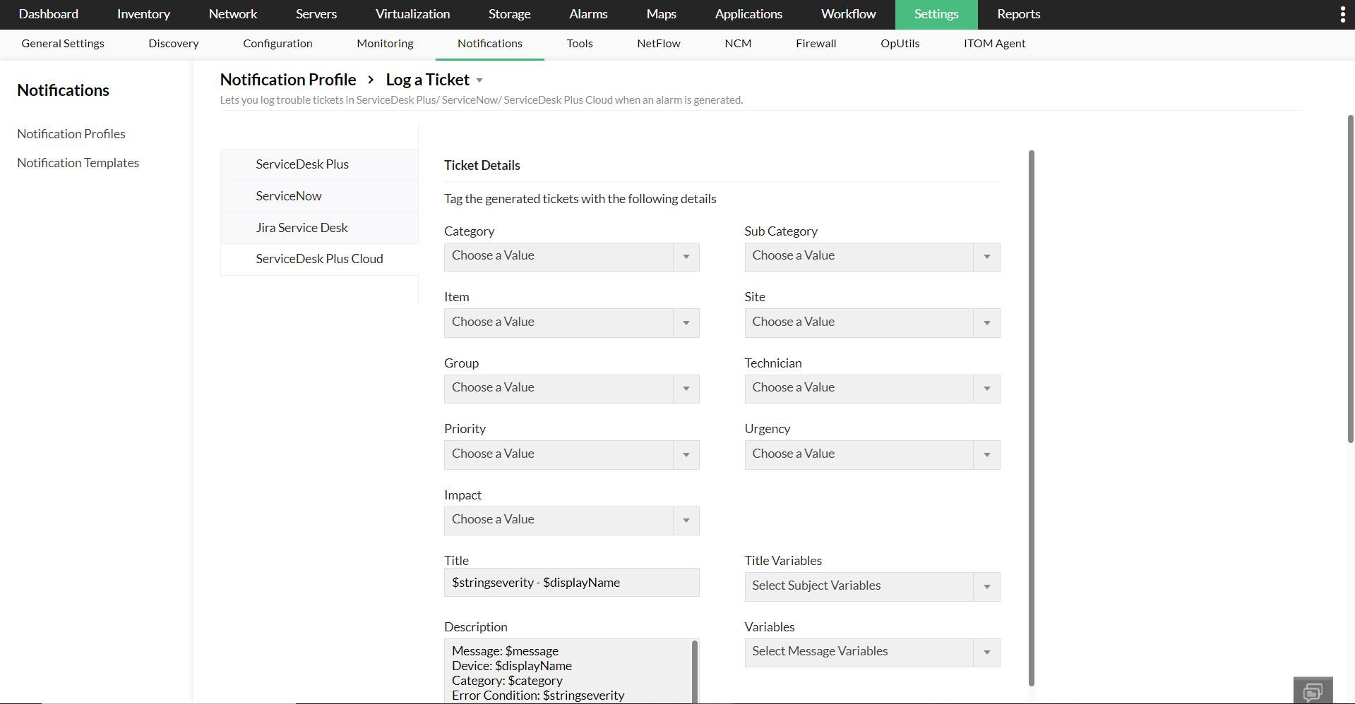 点击这里了解如何用ServiceDesk Plus cloud配置OPManager。