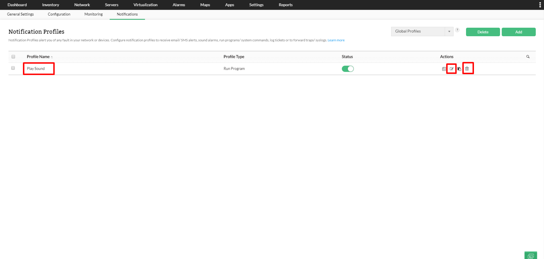 OpManager的通知配置文件可以帮助用户通过所需的渠道发送告警。点击这里了解更多关于如何创建新的通知配置文件的信息,也可以按照以下步骤修改或删除现有通知配置文件。
