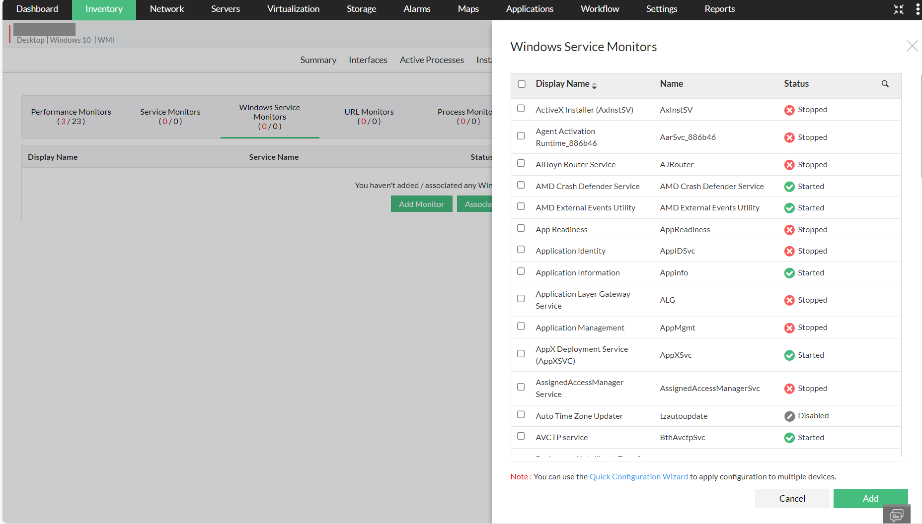 向多个设备添加windows服务监视器