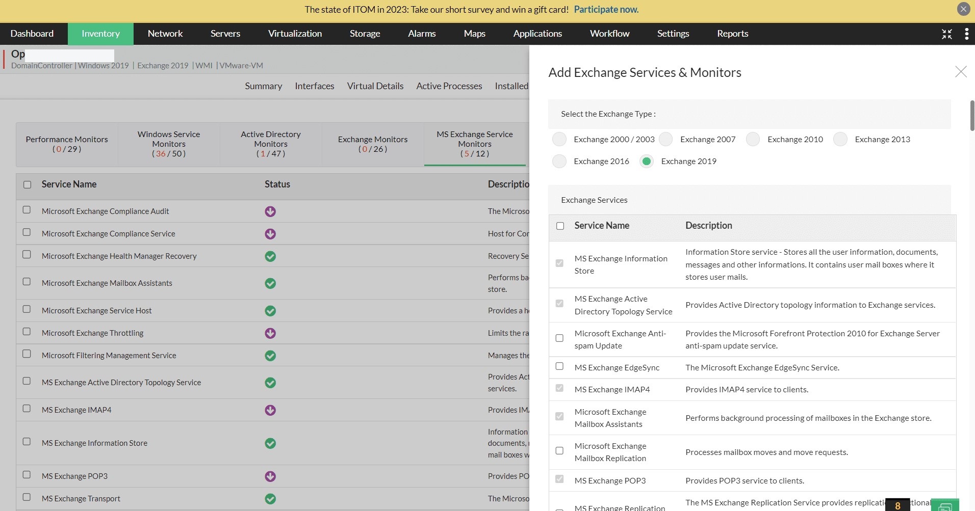 OpManager使用WMI协议监控Exchange服务器及其服务。因此,请确保授予WMI权限以体验无缝监控。还可以修改或启用其他服务和参数的阈值为关键业务预配置阈值。