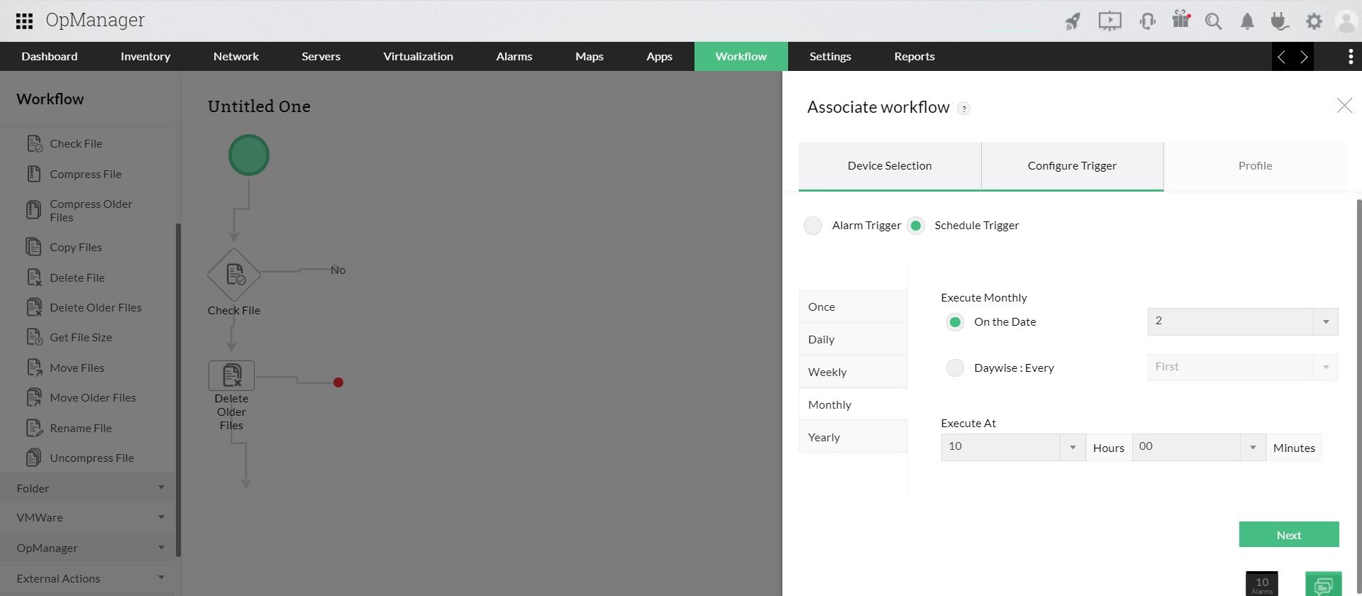 例如,用户可以设计一个工作流来删除超过30天的文件,以释放计算机中的空间。工作流可以计划每月执行一次,这将在满足标准(30天以前)时自动删除过程。