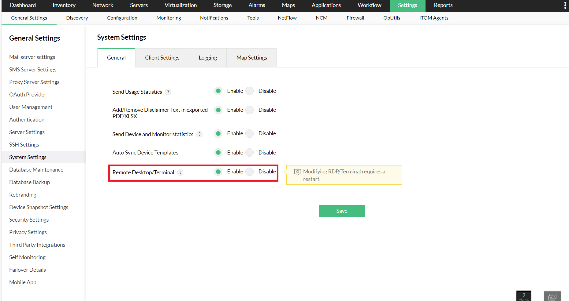 通过在 OpManager中启用RDP,用户可以直接从 OpManager的界面远程连接到他们的Windows设备。这有助于用户轻松解决问题。