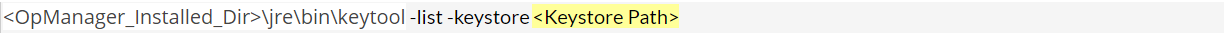 其中 Alias Name 是证书别名。 - 您可以使用以下命令从密钥库获取别名列表