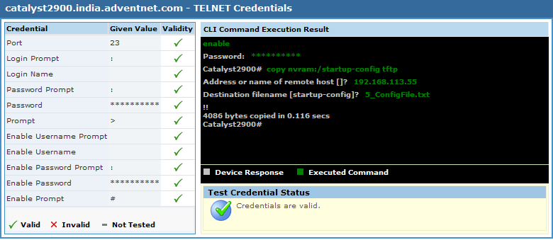 注意:凭证测试选项仅为 TELNET-TFTP, TELNET, SSH and SSH-TFTP 协议提供。 |
