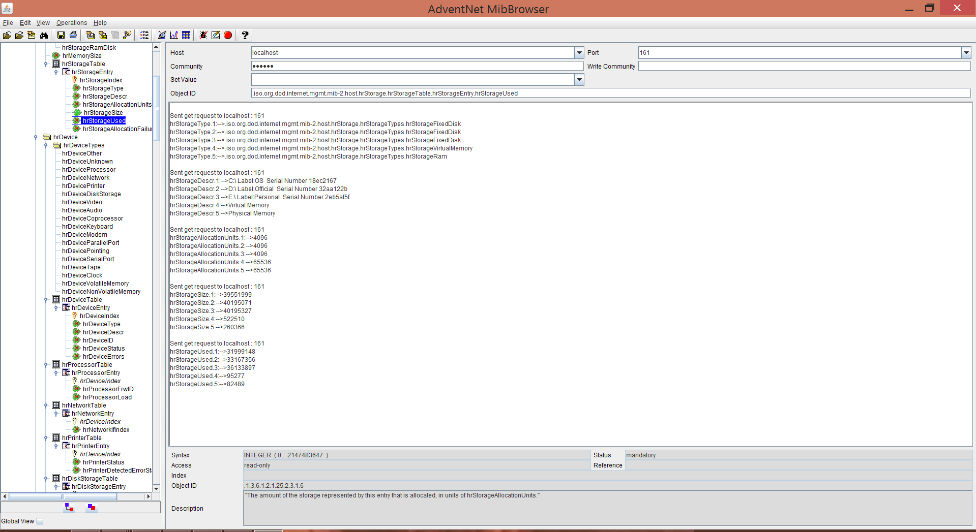 OpManager使用第1个OID(hrStorageType)查找固定磁盘列表,后面3个OID仅用于那些固定磁盘的实际计算。