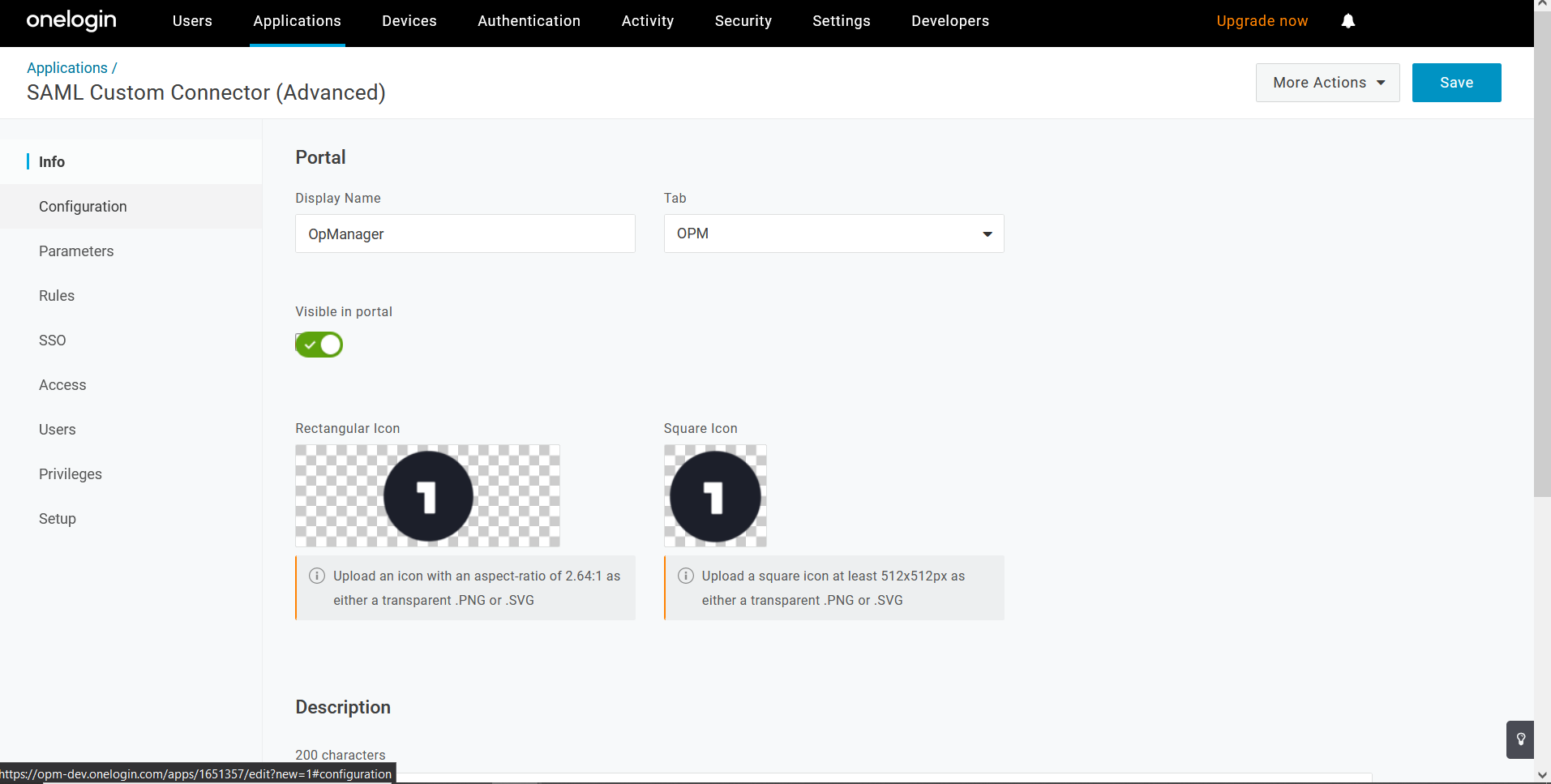 下面列出了在OpManager(SP)中为具有单点登录的OneLogin(IdP)配置SAML身份验证的步骤。