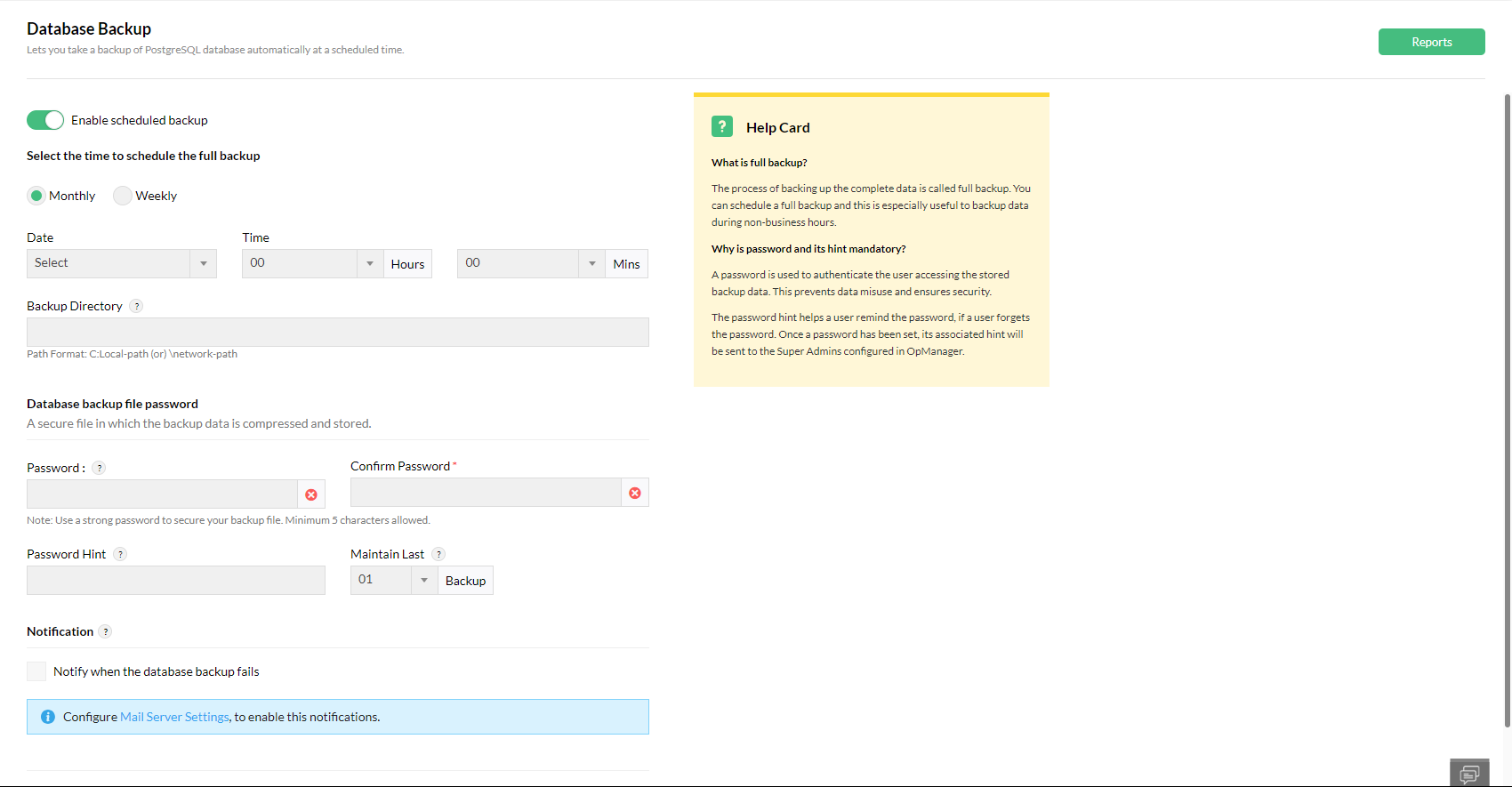 - 点击通知 框以在备份失败时接收通知。请注意,应将邮件服务器设置配置为启用通知;