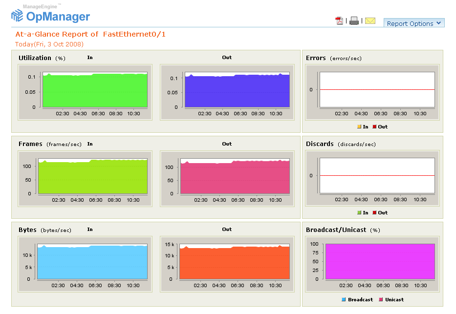交换机的背板利用率让您知道它的最大吞吐量中有多少得到了充分利用。交换机上的背板利用率过高可能会导致端口接收过多的网络流量,进而导致应用程序速度慢、数据包丢失和丢弃率高。监控此参数非常重要,以便确定您的交换基础设施将如何扩展以适应未来的需要。使用OpManager,您可以为背板利用率设置基线值,并在交换机过载之前获得警报。