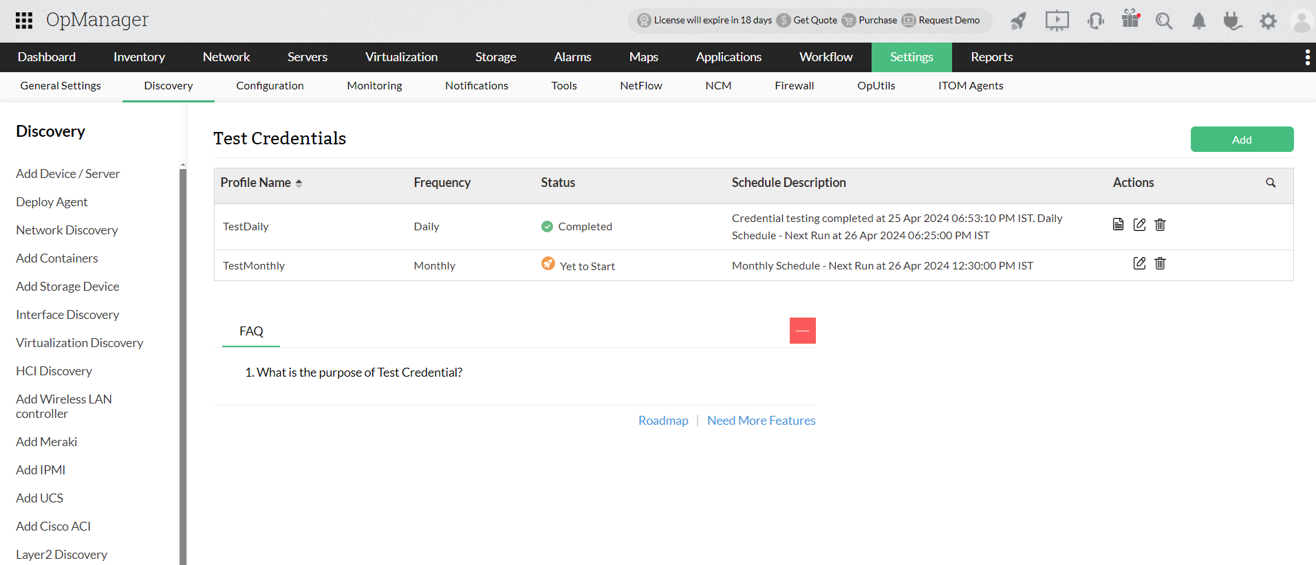 如果在发现设备后凭证错误/过期,OpManager将无法访问该设备,因此无法提取数据进行监控。这限制了OpManager监控特定设备。但是,设备的状态轮询将继续。